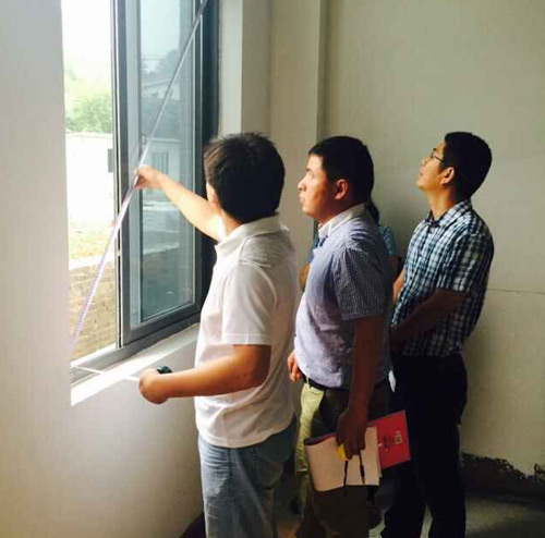 為了加強行業(yè)自律,跟蹤監(jiān)管會員門窗工程質(zhì)量,協(xié)會以及市建委質(zhì)監(jiān)站、建管處、工程造價管理站等部門領導與門窗生產(chǎn)企業(yè)負責人及質(zhì)量技術(shù)考評小組人員一行近三十人,于6月24日檢查了會員單位承建的門窗工程。