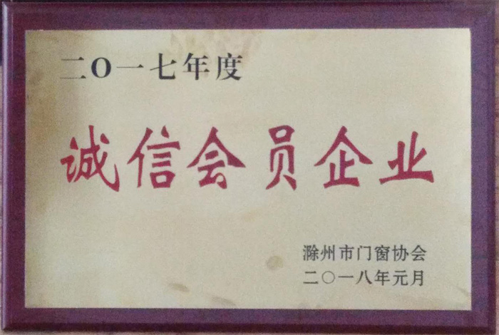 2017年度,為了激勵廣大會員企業(yè)爭先創(chuàng)優(yōu),激發(fā)廣大會員企業(yè)積性向上的正能量,安徽省門窗幕墻協(xié)會開展了“優(yōu)秀會員企業(yè)和誠信會員企業(yè)評選活動”,我公司作為安徽省門窗幕墻協(xié)會會員,積響應(yīng)此次評選活動,配合協(xié)會的考核和審查。經(jīng)理事會2018年第一次會議討論研究,我公司榮獲2017年度優(yōu)秀會員企業(yè)和誠信會員企業(yè)。