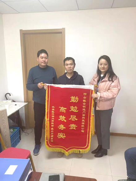 2022年2月25日,碧桂園江蘇區(qū)域揚(yáng)州碧桂園陵江府項(xiàng)目部向我公司贈(zèng)送錦旗,錦旗上書“勤勉盡責(zé)高效務(wù)實(shí)”,對(duì)我公司為項(xiàng)目部提供及時(shí)有效的售后服務(wù)表示感謝。